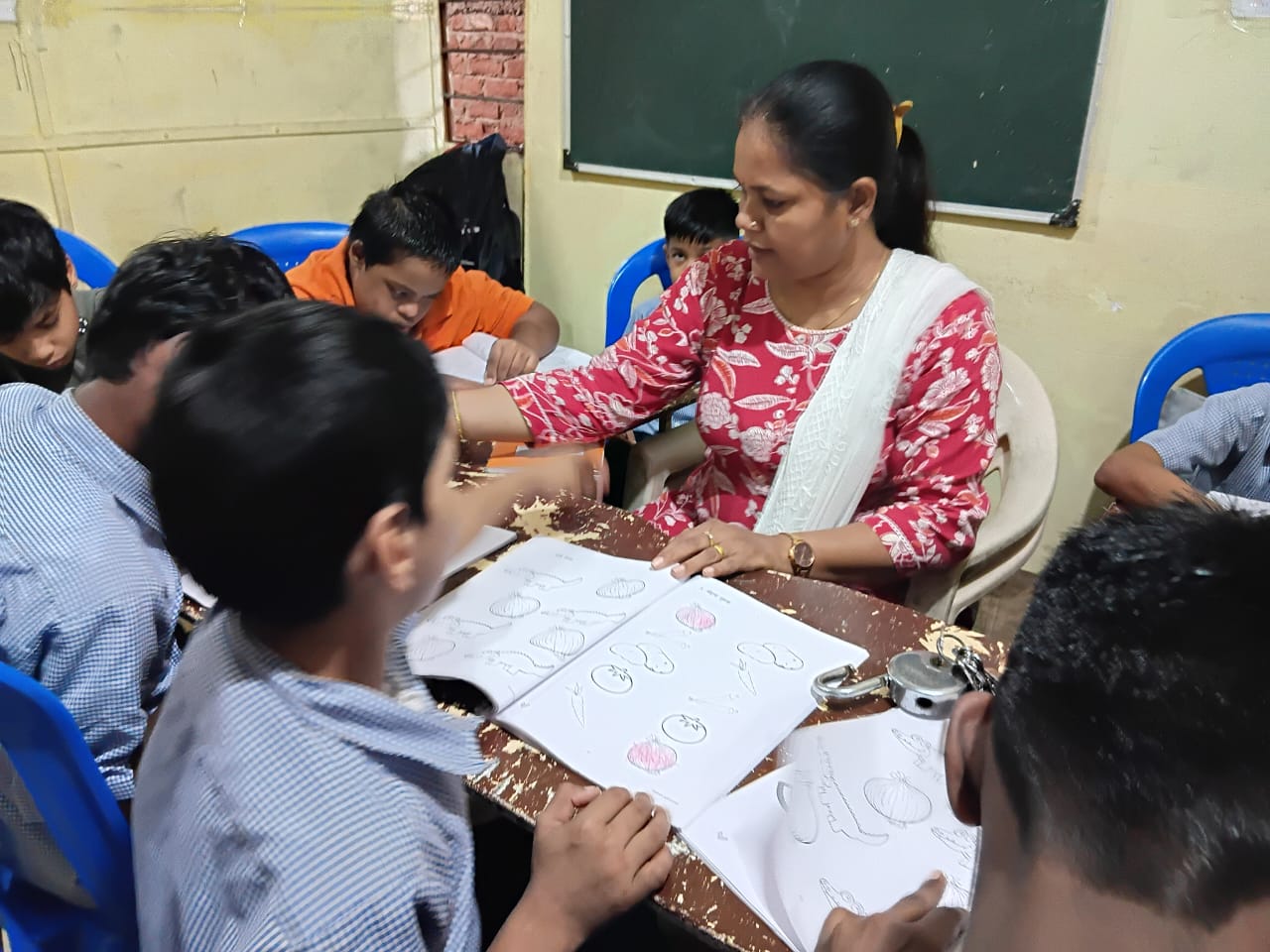 Here, children are not defined by their disabilities — they are guided, taught, and celebrated for every small achievement. We introduce them to daily routines, basic concepts of color, time, and hygiene, and train them in practical skills like stitching, file-making, and screen printing.